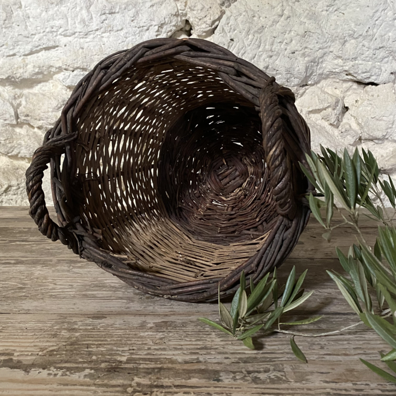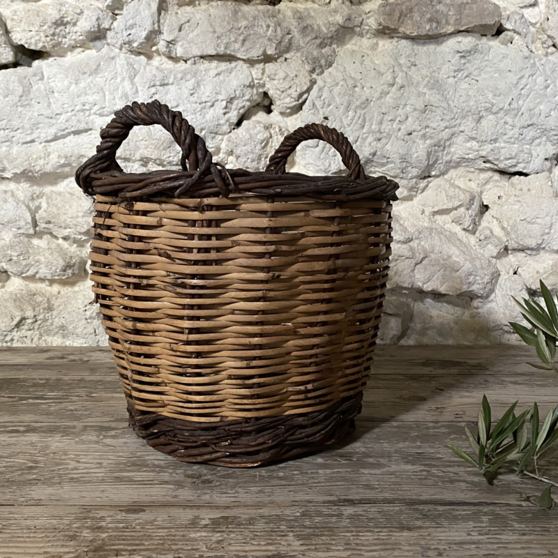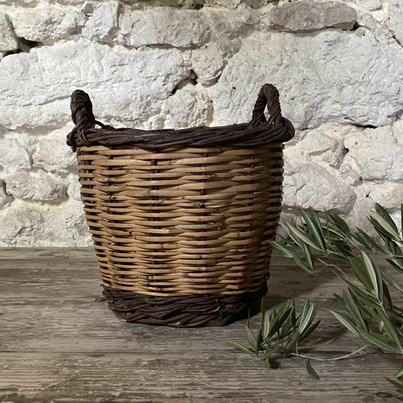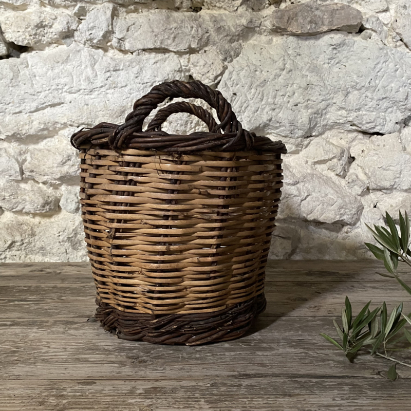 BU20110186 Old French traditional woven rustic basket in beautiful condition! Size: 27 cm high / 33 cm cross section