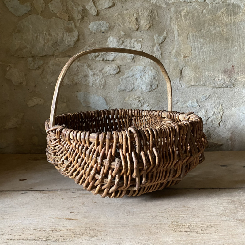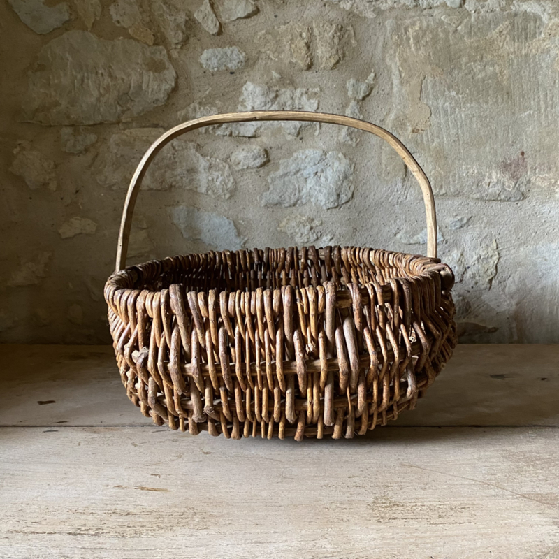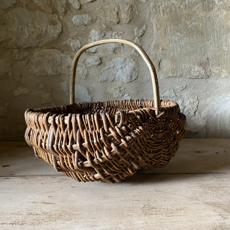 BU20110187 Old French harvest basket made of woven wicker in beautiful condition! Size: 36.5 cm long / 17 cm high (to the handle) / 32 cm high (including the handle) / 35.5 cm wide